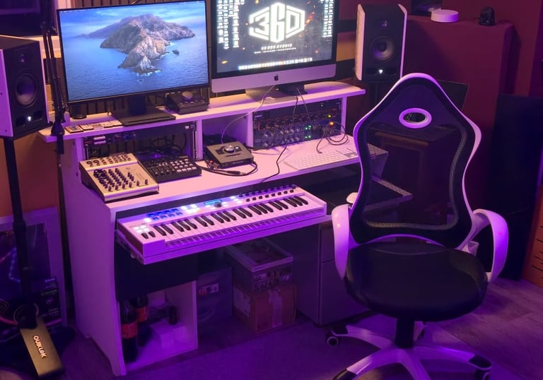 Depuis 2023, Le360Studio transforme vos idées musicales en expériences sonores exceptionnelles. Ici, chaque note compte, chaque voix résonne et chaque instrument s’exprime pleinement. Que vous soyez chanteur, musicien, producteur ou podcasteur, notre studio moderne vous offre un environnement créatif et inspirant pour donner vie à vos projets. Explorez nos services, entrez dans notre univers sonore et laissez la magie opérer.
